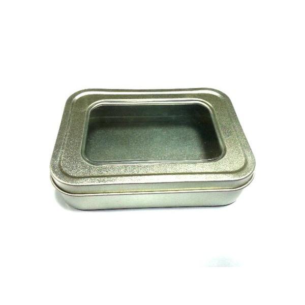 Battery Square Metal Tin Container With PVC Window / Tin Boxes , 109*79*25mm